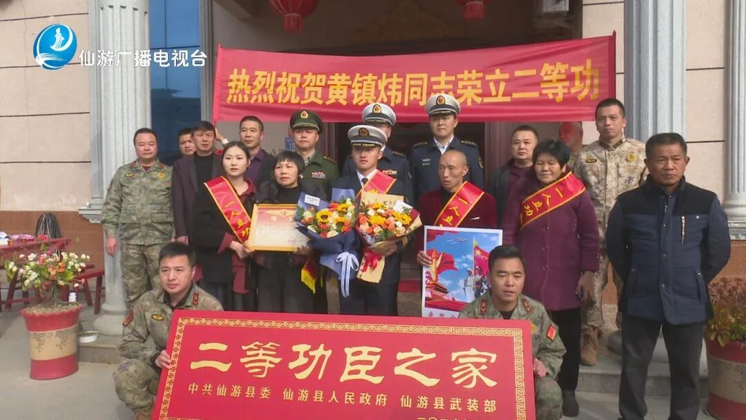 1月24日,莆田市仙游县人武部、县退役军人事务局、度尾镇与部队代表一道为荣立二等功的现役军人黄镇炜及其家属送去二等功喜报和牌匾,感谢他们为部队、为国家培养和输送了优秀人才。