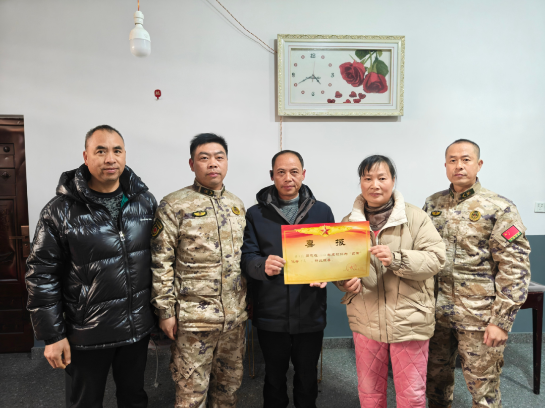 近日,南平市浦城县永兴镇武装部联合退役军人服务站,为荣获“四有”优秀士兵的现役军人练义政家庭送喜报。