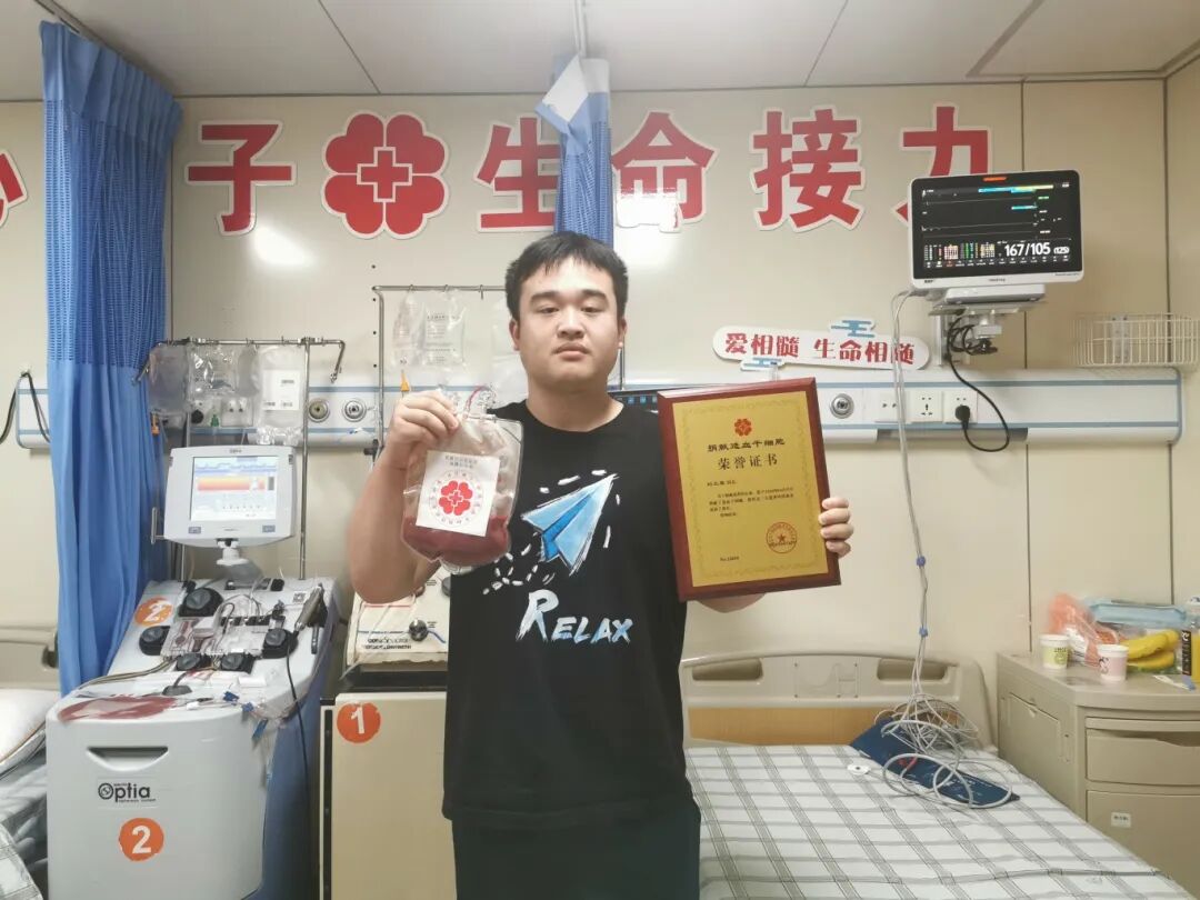 4月13日,签署捐献同意书的那一刻,刘文坚正式开启“生命倒计时”,连续五天的动员剂注射,将造血干细胞从骨髓动员到外周血。第二天,类似感冒的症状如期而至——背疼、乏力、低烧。但这位曾在训练场摸爬滚打、百折不挠的年轻人,将身上的针孔、身体的疼痛当作人生的勋章,始终怀着“很高兴能帮到人”的朴素理念和为民服务的忠诚信仰,用最柔暖的爱心,做最硬核的事——4月17日,经过数小时的外周血循环采集,刘文坚成功捐献200毫升左右的造血干细胞混悬液,兑现了当初加入造血干细胞捐献志愿者队伍的生命承诺。