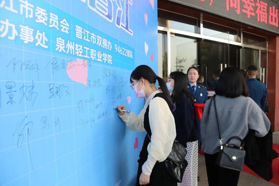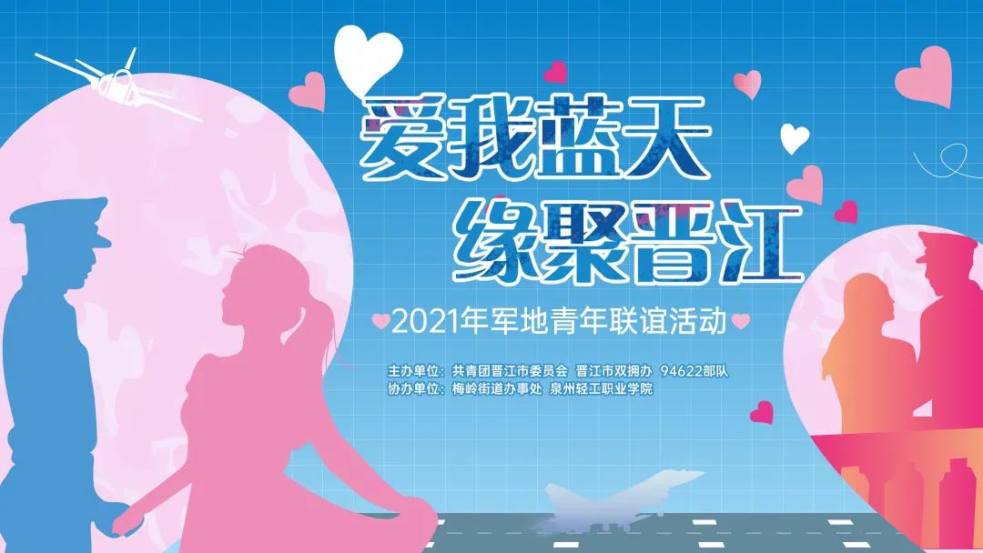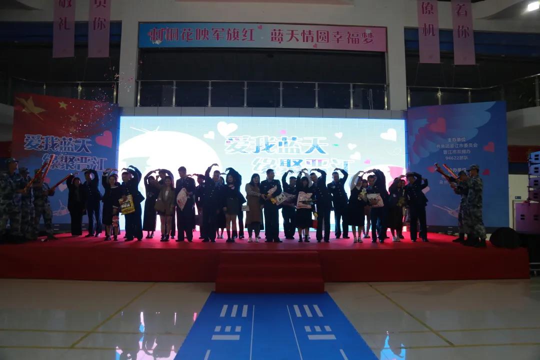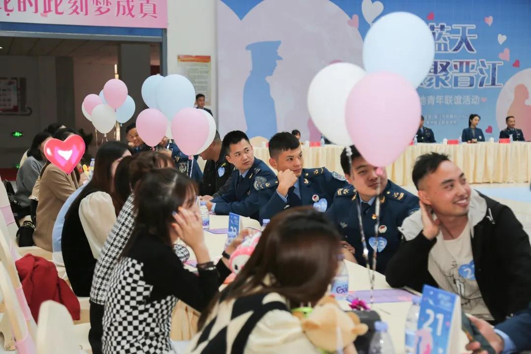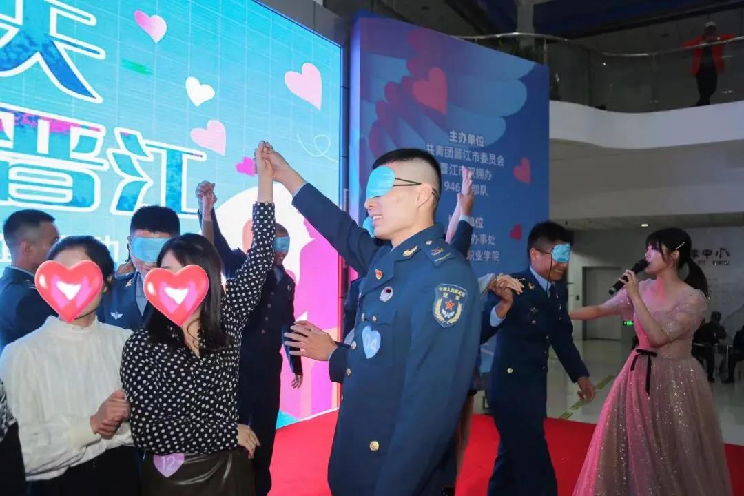 11月13日下午,由共青团晋江市委员会、晋江市双拥办、驻晋某部队联合主办,梅岭街道办事处、泉州轻工职业学院协办的“爱我蓝天,缘聚晋江”军地青年联谊活动在轻工职业学院甜蜜上演。39名优秀女嘉宾与39名驻晋空军部队官兵相约现场,共同度过了一个甜蜜的下午。