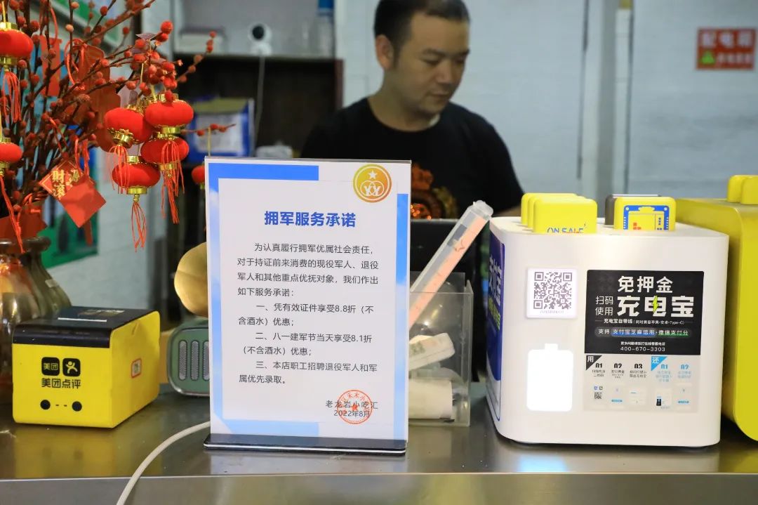 ▲沿街店铺内展示的拥军服务承诺