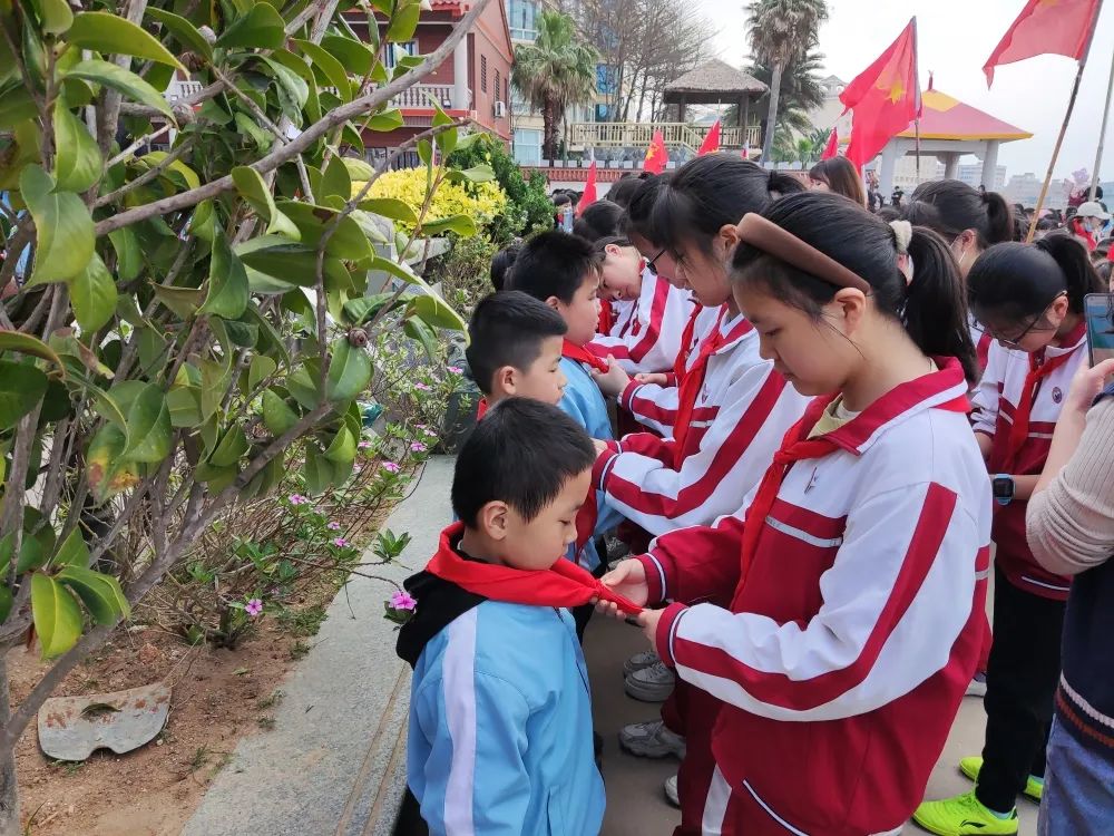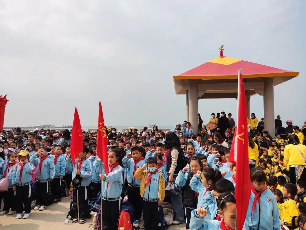 在解放军庙时,正值崇武镇各幼儿园、小学师生等近2000人相聚烈士纪念碑前,举行少先队员入队仪式,并开展“我们的节日·清明校园祭英烈”活动。烈士纪念碑前的入队仪式,让调研组深切感受到赓续红色血脉的蓬勃朝气和发扬双拥传统的时代活力,调研组成员被现场缅怀先烈、致敬英雄的氛围感染,纷纷加入“祭英烈”的队伍中,与学生们一起向革命先烈鞠躬献花,表达崇高的敬意。