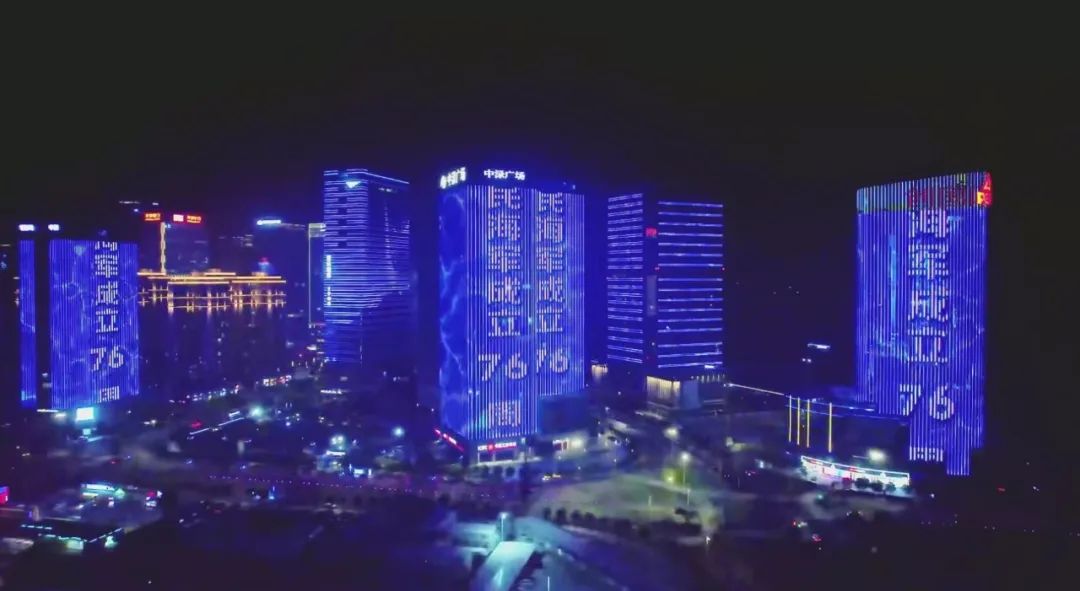 4月21日至23日,泉州、福鼎两地举办主题灯光秀活动,庆祝人民海军成立76周年。泉州连续三晚在中央商务区、东海泰禾广场集体亮灯,“人民海军生日快乐”等双拥标语辉映夜空;福鼎在市政府中心区等核心地段滚动展示强军誓言,吸引众多市民驻足打卡。