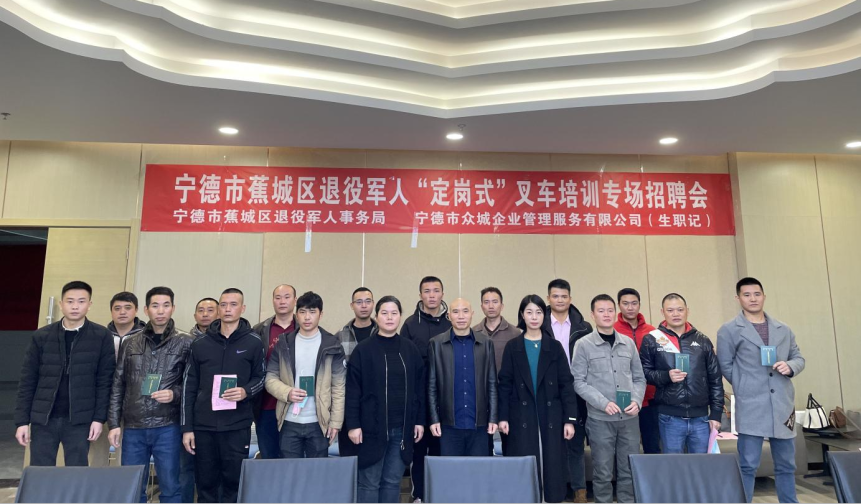 去年12月15日,为期一周的蕉城区第一期退役军人“定岗式”叉车培训班正式开班,一共有14名退役军人参加培训。第一期叉车培训学员100%通过并全部获得叉车证。今年1月5日,在她的协调下,宁德东侨人力资源产业园举办了退役军人叉车工专场招聘,为培训合格的退役军人和有招聘需求的企业创造了双向选择、深入交流的机会,当场就有7名退役军人顺利入职。