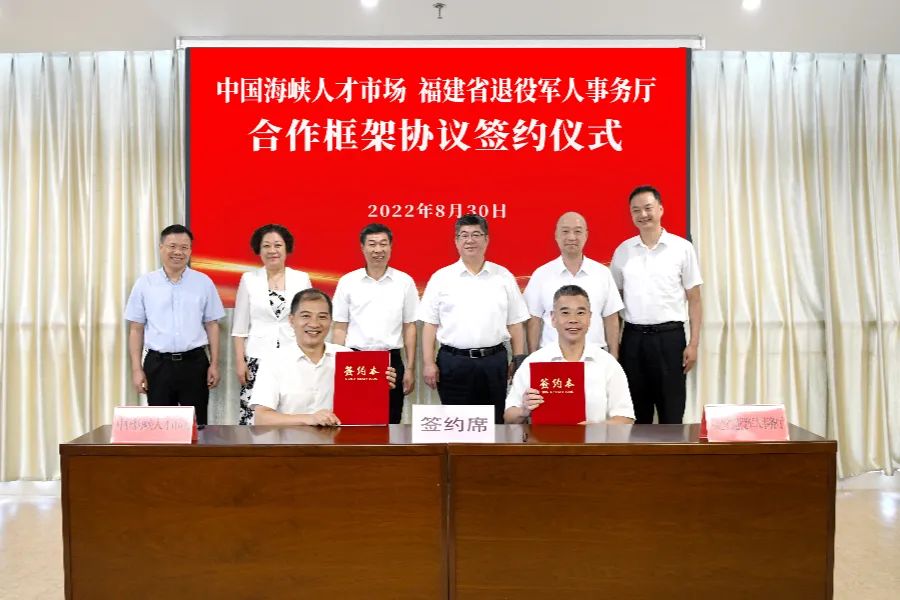 8月30日上午,省退役军人事务厅与中国海峡人才市场在福州签署合作框架协议。双方围绕退役军人创业创新、高质量就业、教育培训、人事服务等4个方面和退役军人创业、推荐就业、灵活用工、培训测评、考试考核、人事档案信息化等10个业务领域,展开全方位合作,为我省退役军人和随军家属提供更多更实更优的就业创业服务支持。省退役军人事务厅党组书记、厅长罗庆春,中国海峡人才市场党组书记、董事长游诚志等出席签约仪式并讲话。