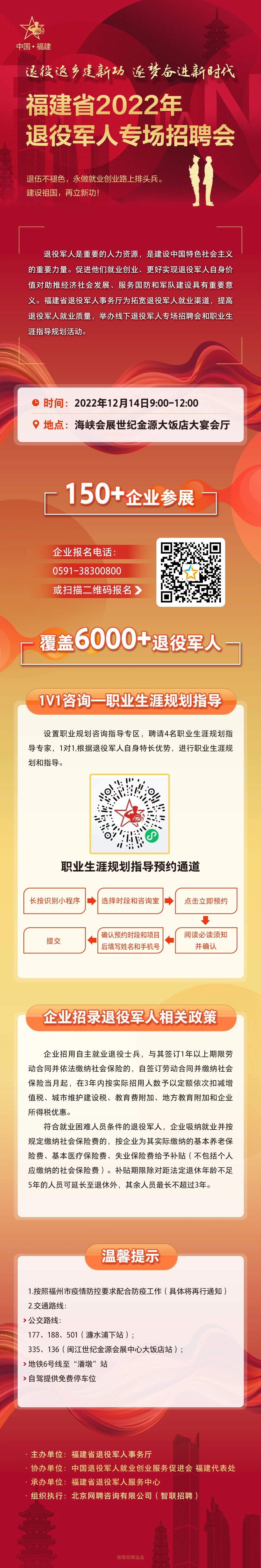 预约报名!福建省2022年退役军人专场招聘会12月14日举办