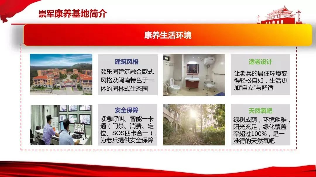 根据协议,江南老年颐乐园提供4号公寓作为“崇军楼”康养活动用房,建筑面积2878平方米,共有套房51间。此外,江南老年颐乐园捐赠总价值50万元崇军康养项目服务,为入住老兵(自理型)提供长期康养服务。其中,家庭有特殊困难、子女短期内无法照料的自理型老兵及老兵家属,可免费享受一周的临时照料服务;度假旅居的退役军人及家属可享入住优惠。同时,江南老年颐乐园提供二十几亩园林生态基地,为退役军人提供创业机会、创业指导、政策咨询、投融资信息、创业孵化等服务,助力退役军人实现创业梦想,更好实现自身价值。