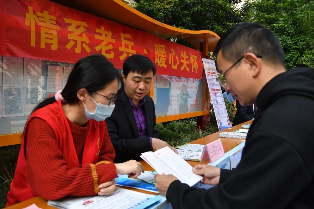 政策宣传筑防线,便民服务情意暖。在政策服务区,来自不同行业、不同岗位的党员志愿者、退役军人发挥个人特长提供金融、政策、法律咨询以及义剪、义诊等暖心服务,让基层一线退役军人、军属在“家门口”就能享受到便利、优质、高效的服务。