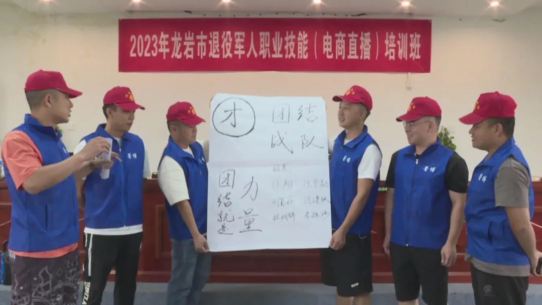 培训中,授课老师首先引导学员以团队的形式进行创意性作品设计,建立团队意识。随后,围绕此次“直播带货”的培训主题,采取理论学习+实操演练相结合的形式展开教学,带领学员们深入了解从直播间的建立、运营、文案、拍摄、后期分析等全流程知识,促进退役军人提升就业技能、探索创业思路。