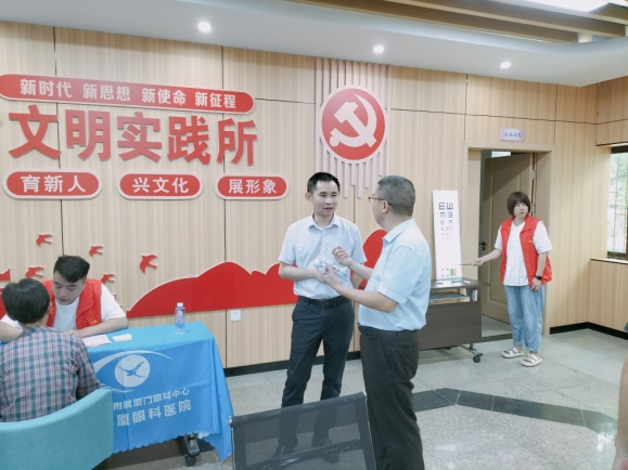 近日,南平市退役军人事务局、邵武市退役军人事务局、邵武市水北街道办事处、南平华厦眼科医院在邵武市水北街道联合举办“我为老兵送光明,我为军属献爱心”光明行活动。活动为近300名退役军人、重点优抚对象以及他们的家属开展义诊。活动现场南平华厦眼科医院医护人员为退役军人、重点优抚对象提供公益性眼健康筛查和眼健康科普宣传。南平市退役军人事务局谢金润局长现场察看活动开展情况。