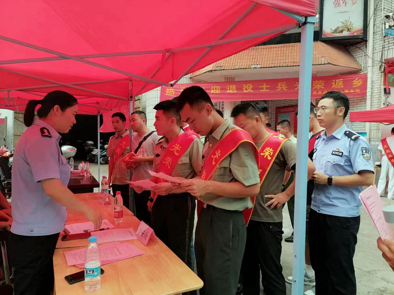欢迎会上,古田县退役军人事务局为每一位退役返乡士兵佩戴“光荣返乡”绶带,希望他们永葆退役军人本色,继续发扬“退伍不褪色,退役不退志”的精神。同时,还为返乡士兵们开展“返乡第一课”,相关负责人对退役军人教育培训、就业创业等相关政策进行了详细解答,帮助退役士兵了解当前就业创业形势,增强社会适应性。
