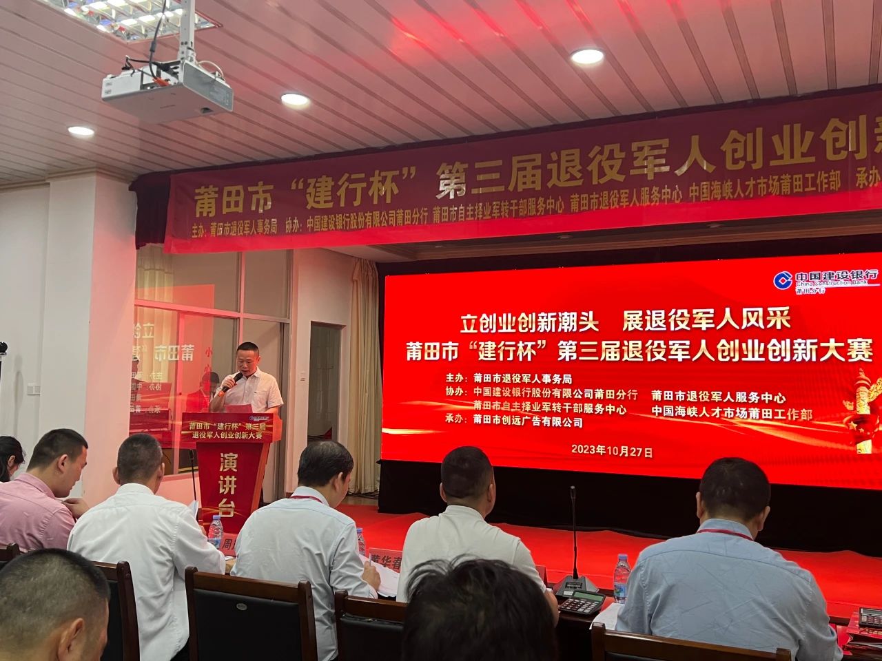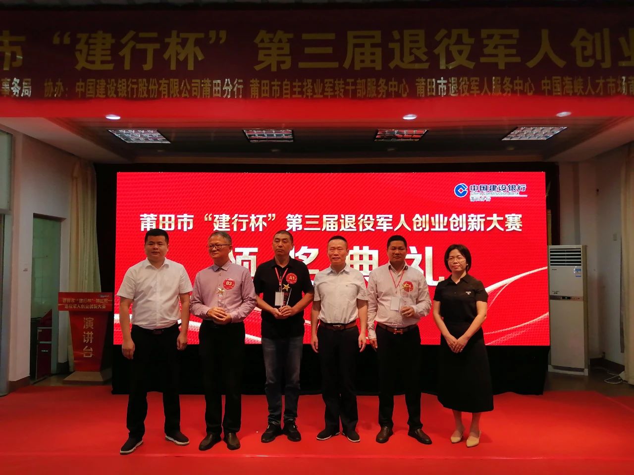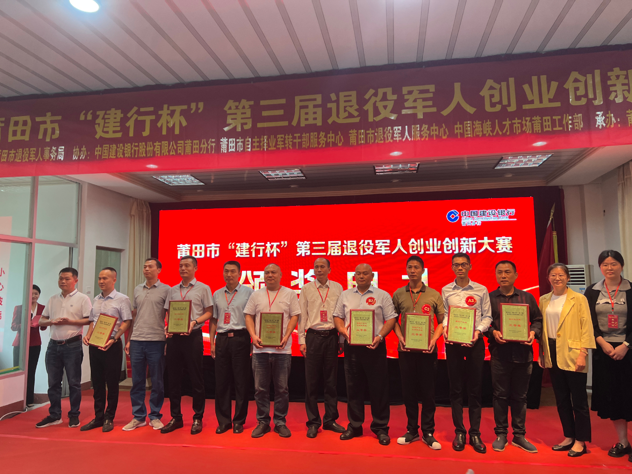 10月27日,由莆田市退役军人事务局主办,中国建设银行莆田分行、中国海峡人才市场莆田工作部协办的莆田市“建行杯”第三届退役军人创业创新大赛在莆田市成功举办。大赛从10个项目中分别评选出新兴产业组、现代农业组、传统产业与生活服务组的一等奖、二等奖和三等奖。