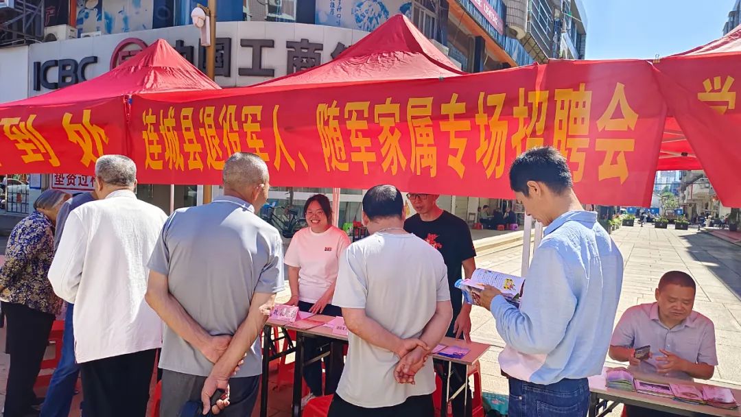 为更好地支持退役军人及随军家属家门口实现就业,用心用情做好退役军人服务保障工作,大力弘扬拥军优属、拥政爱民光荣传统,不断拓宽就业渠道。5月15日,连城县退役军人事务局联合县人社局在中山街举办2024年退役军人、随军家属专场招聘会,为重点企业和退役军人及随军家属牵线搭桥,实现用工就业“双赢”。