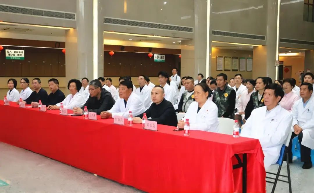 厦门市退役军人事务局副局长曾福华,厦门市退役军人事务局思政处四级调研员付益兵,翔安区退役军人事务局四级调研员叶玉树,香山街道退役军人服务站负责人杨锋强,厦门莲花医院院长李力、莲河总院党支部书记王铁鹰、副院长欧阳称英、院长助理黄仙英等领导出席,厦门莲花医院退役军人、军嫂、医务人员代表近百人参加活动。