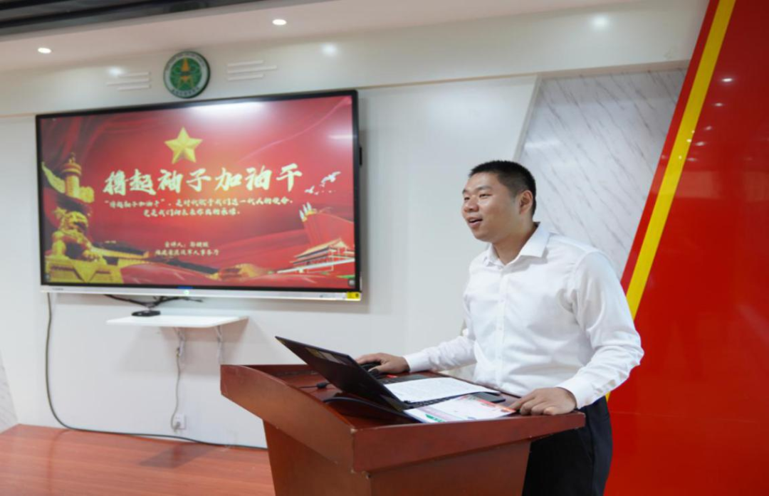 来自31618部队的宣讲员杨辰浩,围绕《聚焦职能使命矢志建功军营》主题,展现了部队官兵始终听党话、跟党走,不断奋勇向前的精神风貌,表达部队青年干部忠诚维护核心、矢志奋斗强军,忠实履行新时代使命任务的雄心壮志。