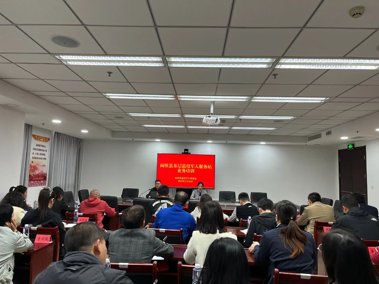 为深入学习贯彻习近平新时代中国特色社会主义思想主题教育,进一步提升闽侯县基层退役军人服务站工作人员业务能力,完善退役军人服务保障体系,推动退役军人政策落实,11月16日-17日上午,闽侯县退役军人事务局组织召开基层退役军人服务站业务培训会,14个乡镇(街道)和部分村(社区)退役军人服务站工作人员共计58人参加。