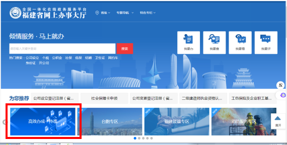 登录网页版福建省网上办事大厅,点击“高效办成一件事”——选择“省级‘一件事’”——点击“退役军人服务‘一件事’”。