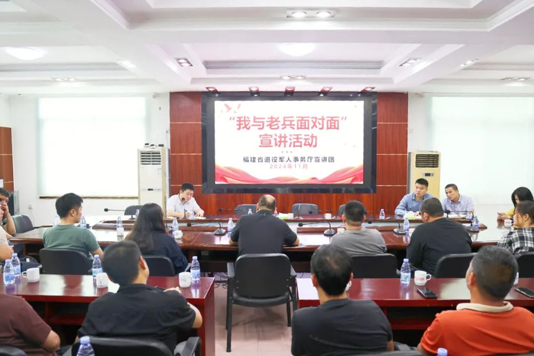 为深入学习贯彻党的二十届三中全会精神、习近平总书记来闽考察重要讲话精神,以及全国退役军人工作会议精神,10月31日至11月1日,省退役军人事务厅青年干部宣讲小分队走进泉州市,以“感悟思想伟力,凝聚奋进力量”为题,开展“我与老兵面对面”宣讲及调研活动。